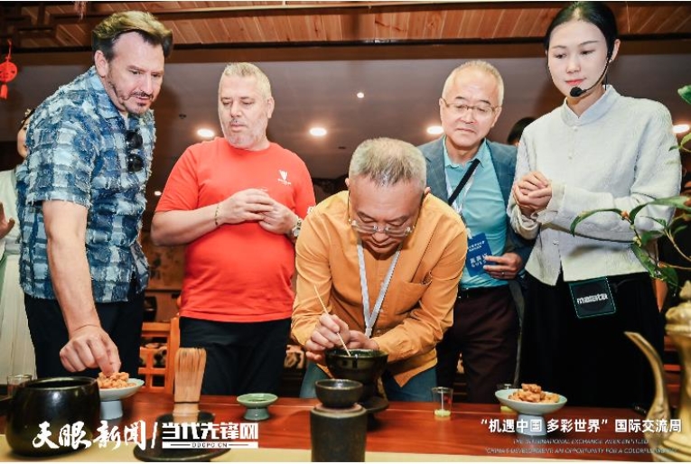 打卡“天下第一壺”景觀,參訪團(tuán)層層爬樓,領(lǐng)略“壺中”的每一處風(fēng)情,體驗(yàn)茶道茶藝,欣賞茶山茶歌,真可謂是“茶里乾坤大,壺中日月長”。