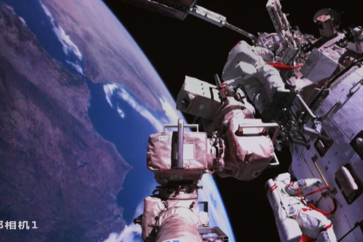 他們二人身著我國新一代“飛天”艙外航天服,上面的航天員簽名見證了中國航天一個又一個紀(jì)錄——