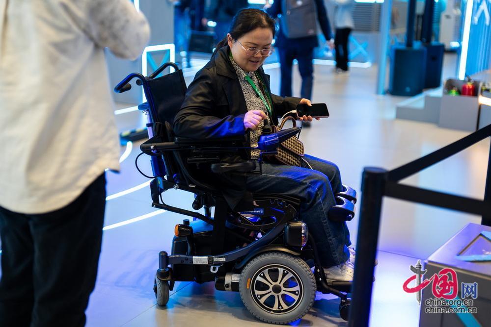 觀眾在現(xiàn)場體驗智能輪椅。中國網(wǎng)記者