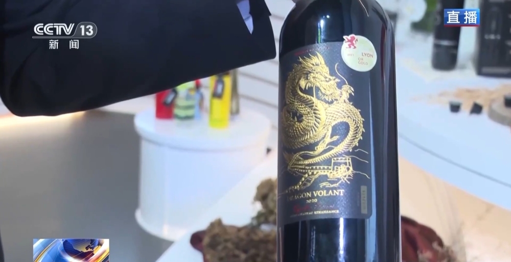 要特別介紹的是一款干紅葡萄酒。這款葡萄酒,酒瓶里面,是來自法國波爾多一家葡萄酒莊園陳釀18個月的美酒;而酒瓶外面,也是一個亮點(diǎn),是由中國和法國設(shè)計(jì)師聯(lián)合設(shè)計(jì)的極具中國文化特色的金龍和長城圖案包裝,這不僅是一瓶佳釀,更是中法文化交流、友好往來的見證。