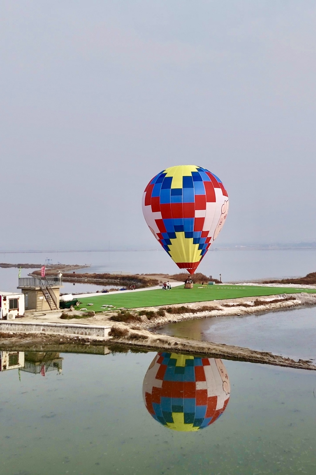 運(yùn)城七彩鹽湖景區(qū)的熱氣球游覽項(xiàng)目。澎湃新聞記者 陳鑫露 攝