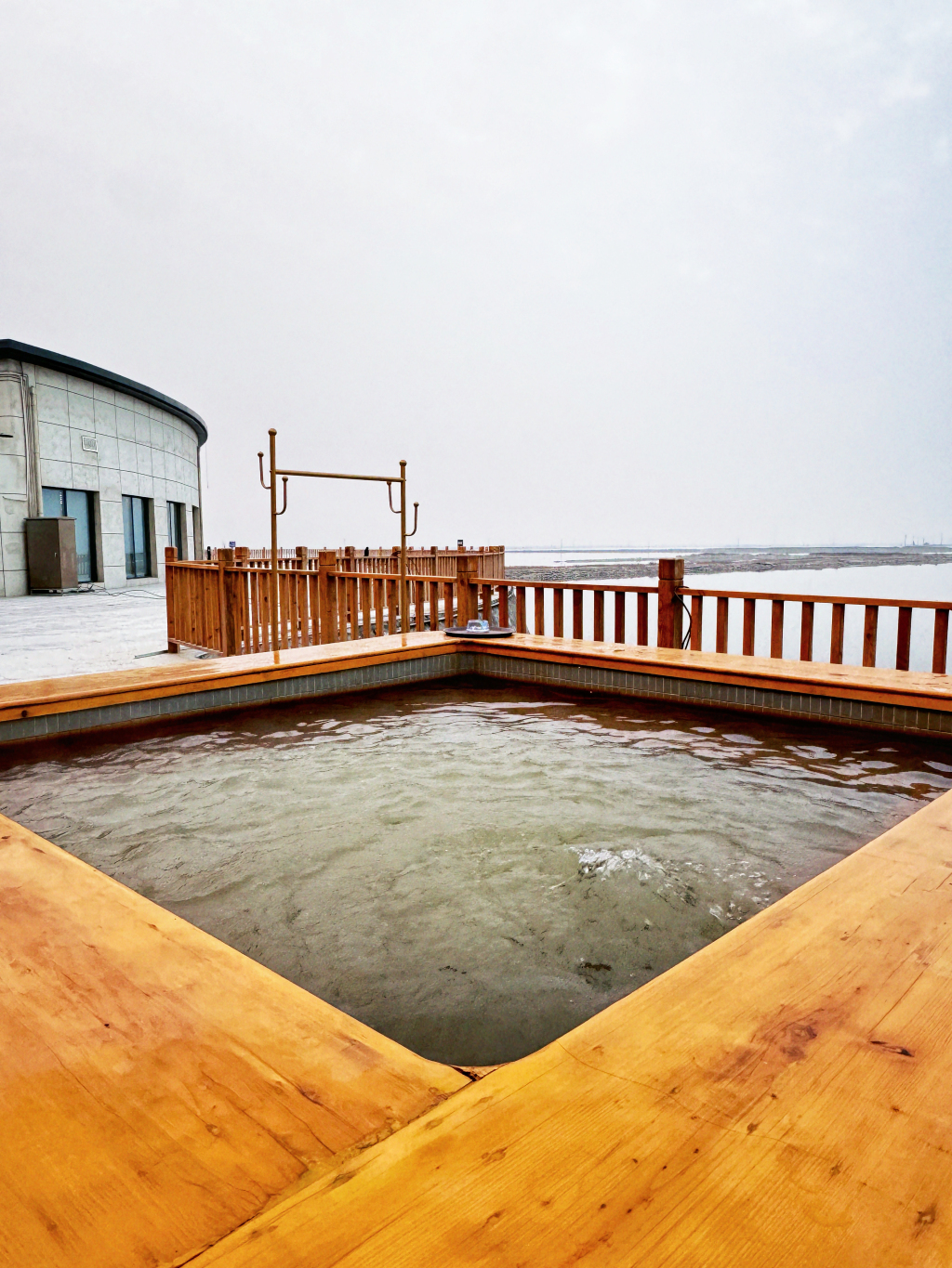 運(yùn)城鹽湖打造出了以鹽為本的“五絕”康養(yǎng)休閑體驗(yàn)之一——醫(yī)用溫泉水療。這里的溫泉水源自鹽湖中心腹地2121米深處,為氟、鍶型地?zé)岬V泉水,醫(yī)用價值高。澎湃新聞記者 金向玉 攝
