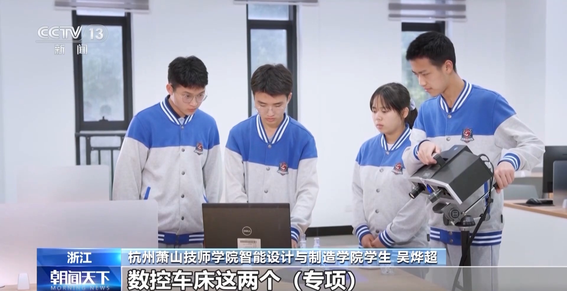 在杭州蕭山技師學(xué)院的多軸加工教學(xué)工作站里,學(xué)生們正在進(jìn)行實(shí)操訓(xùn)練。體積最大的這臺叫五軸加工中心,專門用于加工航天裝備、精密器械的復(fù)雜曲面。一些學(xué)生告訴記者,像這樣的大家伙,這兩年學(xué)校沒少添置。