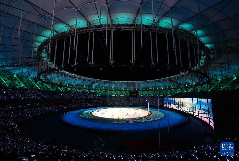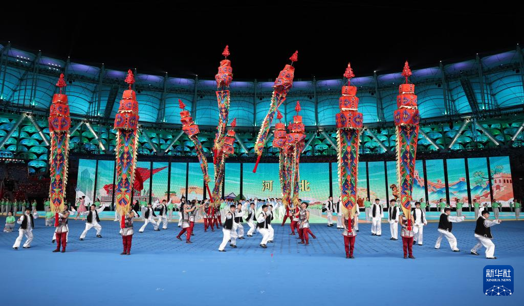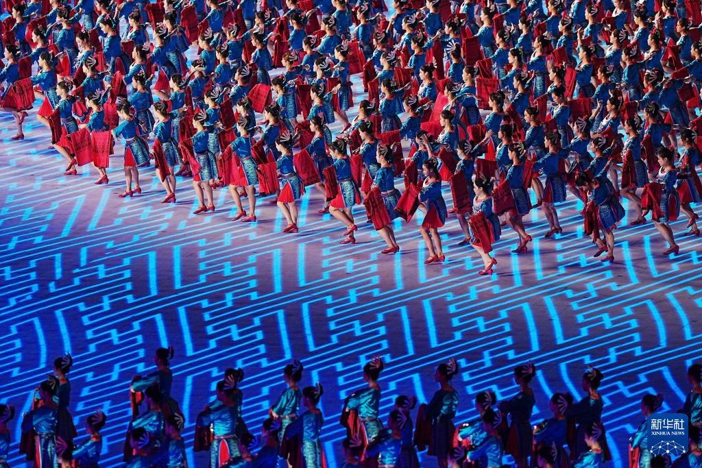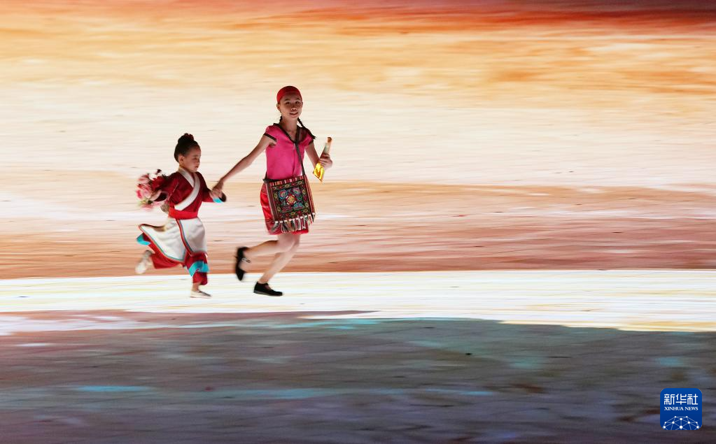 11月22日,開幕式現(xiàn)場升起中華人民共和國國旗、中華人民共和國少數(shù)民族傳統(tǒng)體育運(yùn)動(dòng)會(huì)會(huì)旗和中華人民共和國第十二屆少數(shù)民族傳統(tǒng)體育運(yùn)動(dòng)會(huì)會(huì)旗。