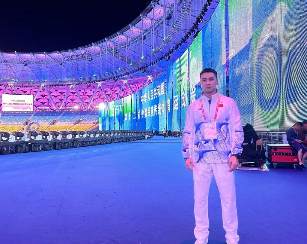 他是來(lái)自新疆伊犁的哈薩克族小伙,但在第十二屆全國(guó)少數(shù)民族傳統(tǒng)體育運(yùn)動(dòng)會(huì)(以下簡(jiǎn)稱“運(yùn)動(dòng)會(huì)”)的開(kāi)幕式上,他舉起江蘇代表團(tuán)的旗幟走在了最前頭。