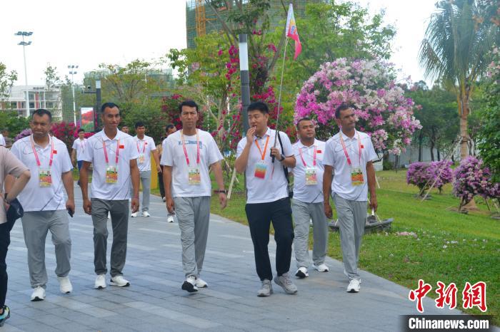 11月25日,海南三亞,第十二屆全國少數(shù)民族傳統(tǒng)體育運(yùn)動會參賽代表團(tuán)在三角梅科博園參觀考察。張月和 攝