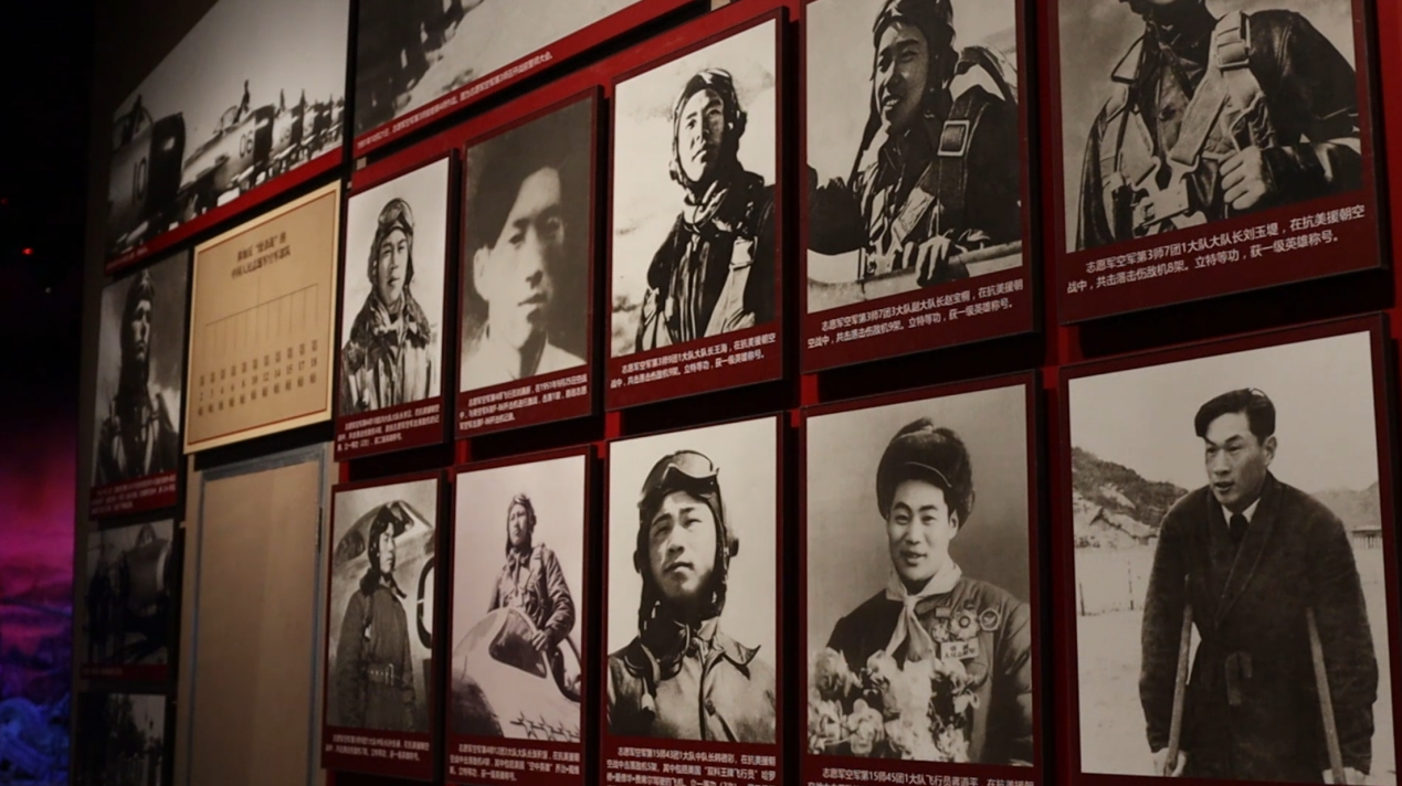 在丹東抗美援朝紀(jì)念館,第一代飛行員們的肖像照。人民網(wǎng)記者 邱宇哲攝