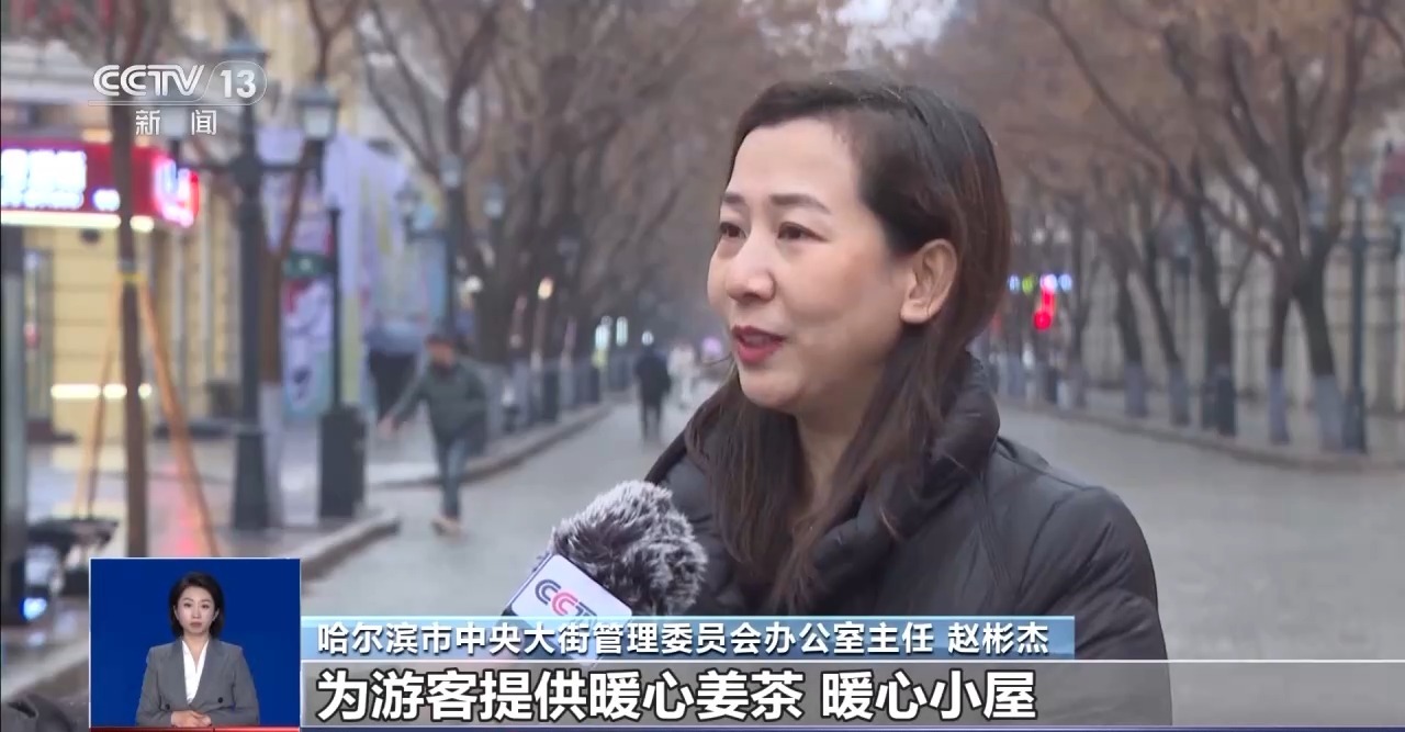 哈爾濱市中央大街管理委員會辦公室主任 趙彬杰:我們今年主打的就是一個貼心、細(xì)心,我們號召街區(qū)的商家企業(yè)為游客提供暖心姜茶、暖心小屋。爭取讓每一位來到中央大街的游客,在體驗冰雪之美的同時,更多感受到“爾濱”的熱情。
