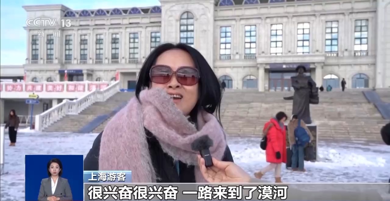 上海游客:坐上雪國列車,看著雪國的風(fēng)光。很興奮,一路來到漠河,也是我最期待,最向往的一個地方。