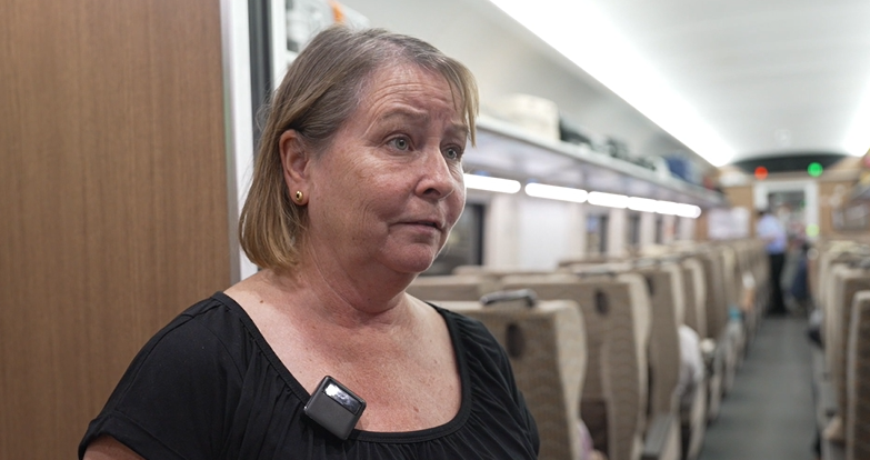 黃復勝:“我感覺坐了這個火車,覺得很舒服,然后很快就可以進火車,check in(進站)和 check out(出站)都是很方便的。”