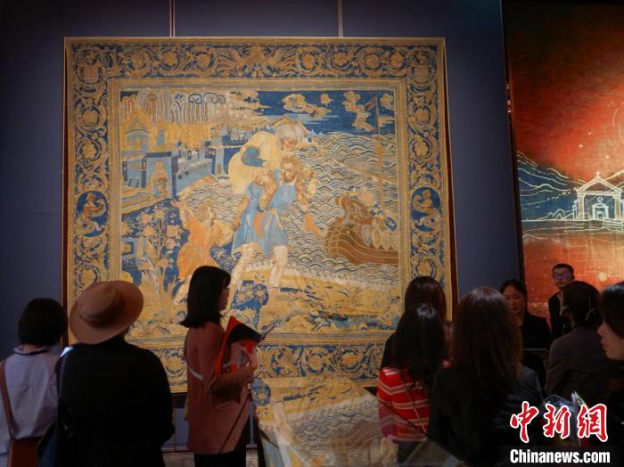 11月15日,澳門保利美高梅博物館正式開(kāi)幕。圖為觀眾參觀初代澳門總督馬士加路也所訂制的掛毯。中新社記者 鄭嘉偉 攝