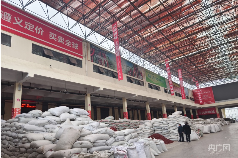 仲冬時節(jié),走進(jìn)位于貴州北部的遵義市蝦子鎮(zhèn)的中國辣椒城,火紅的干辣椒堆成一座座小山,分外惹眼,LED大屏不斷刷新著數(shù)據(jù),上面滾動顯示的是“全國干辣椒價格指數(shù)”,這些價格成為全國各大辣椒交易市場的定價“風(fēng)向標(biāo)”,展示著當(dāng)?shù)亍爸袊苯?、遵義定價、買賣全球”的目標(biāo)。