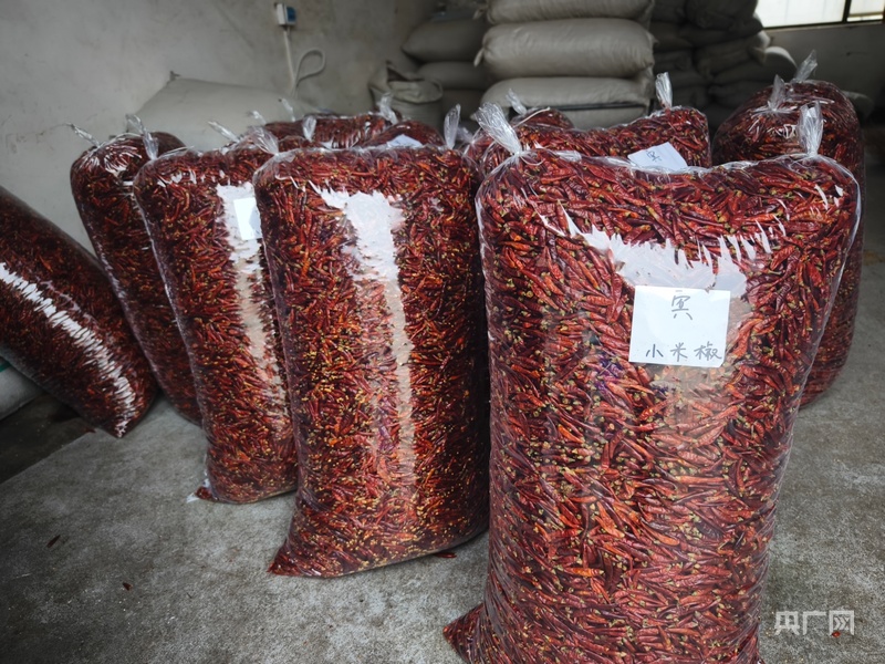 裝袋好的辣椒正等著運(yùn)往各地(央廣網(wǎng)記者 欒小琳 攝)