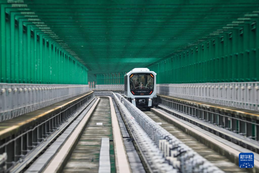 這是11月21日在澳門(mén)拍攝的行駛中的輕軌列車(chē)。新華社記者 王益亮 攝