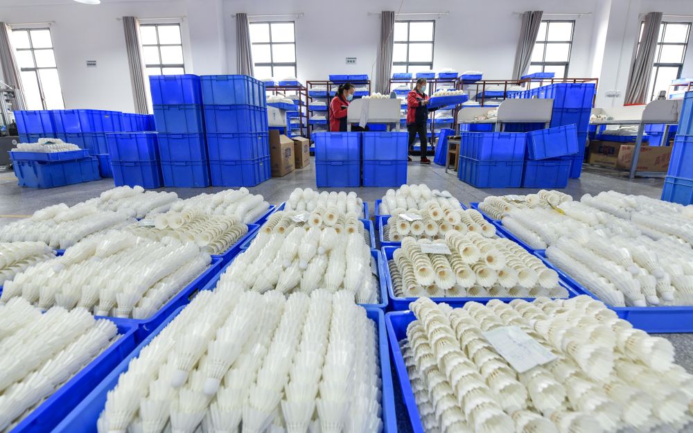 敦寨鎮(zhèn)的羽毛球,還衍生出了包括羽毛球拍等產(chǎn)品和包裝在內(nèi)的眾多下游企業(yè)。其中一家公司生產(chǎn)的碳纖維羽毛球拍,每月可達(dá)3萬支,大部分產(chǎn)品出口到東南亞等海外市場(chǎng)。