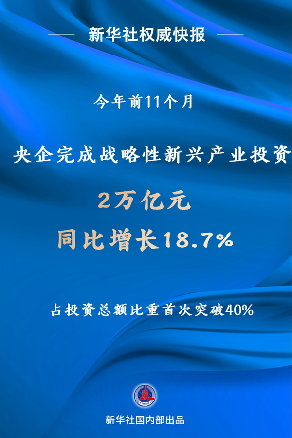 今年以來,中央企業(yè)堅(jiān)守實(shí)體經(jīng)濟(jì),在新興產(chǎn)業(yè)的布局節(jié)奏加快,1至11月完成戰(zhàn)略性新興產(chǎn)業(yè)投資2萬億元,同比增長(zhǎng)18.7%,占投資總額比重首次突破40%。