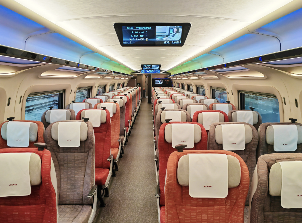 “身高”從4.05米下降到3.85米,但走進(jìn)車廂,記者感受到內(nèi)部空間更大?!巴ㄟ^(guò)集成化、小型化設(shè)計(jì),在列車體積減少5%的同時(shí),旅客使用面積增加4%,兩端大件行李存放區(qū)域增加了138%。”CR450AF動(dòng)車組制造商中國(guó)中車四方股份公司副總工程師陶桂東說(shuō)。