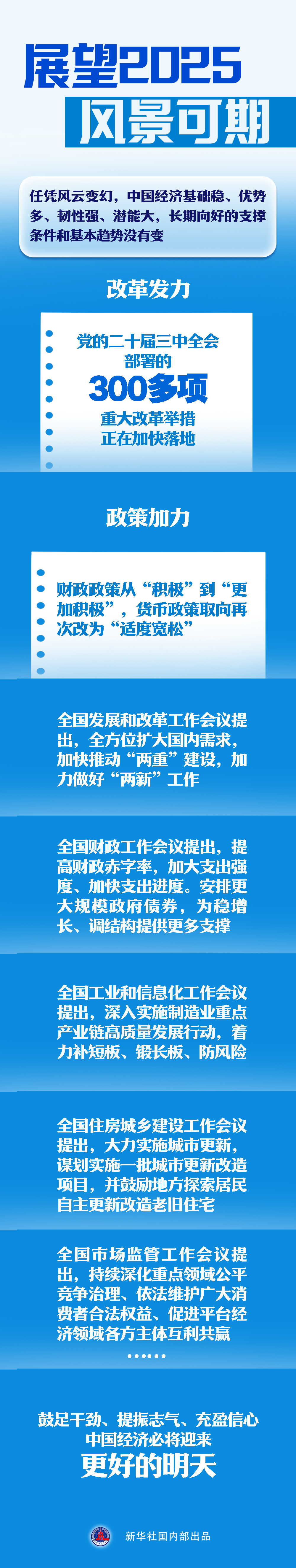 前進(jìn)道路上,我們還將在風(fēng)高浪急時(shí)爬坡過(guò)坎,在驚濤駭浪中涉灘闖關(guān),更將在改革創(chuàng)新、團(tuán)結(jié)奮斗中創(chuàng)造萬(wàn)千氣象。鼓足干勁、提振志氣、充盈信心,中國(guó)經(jīng)濟(jì)必將迎來(lái)更好的明天。