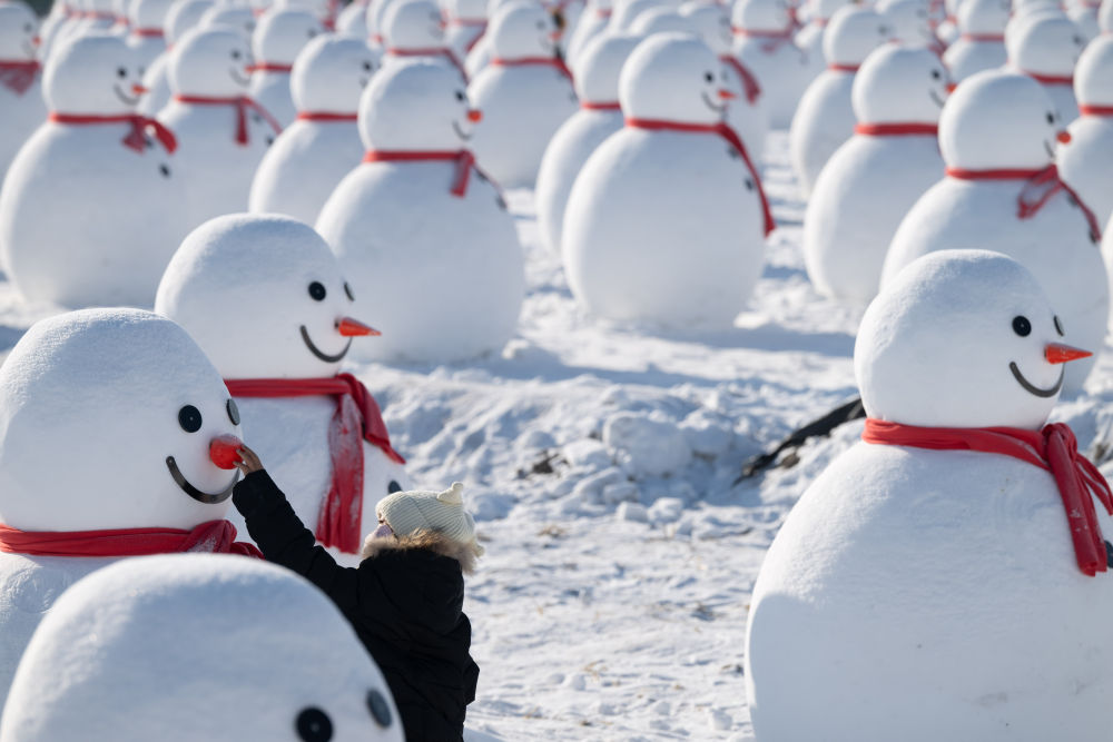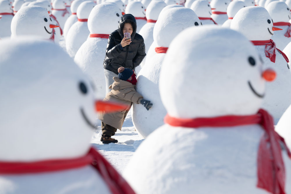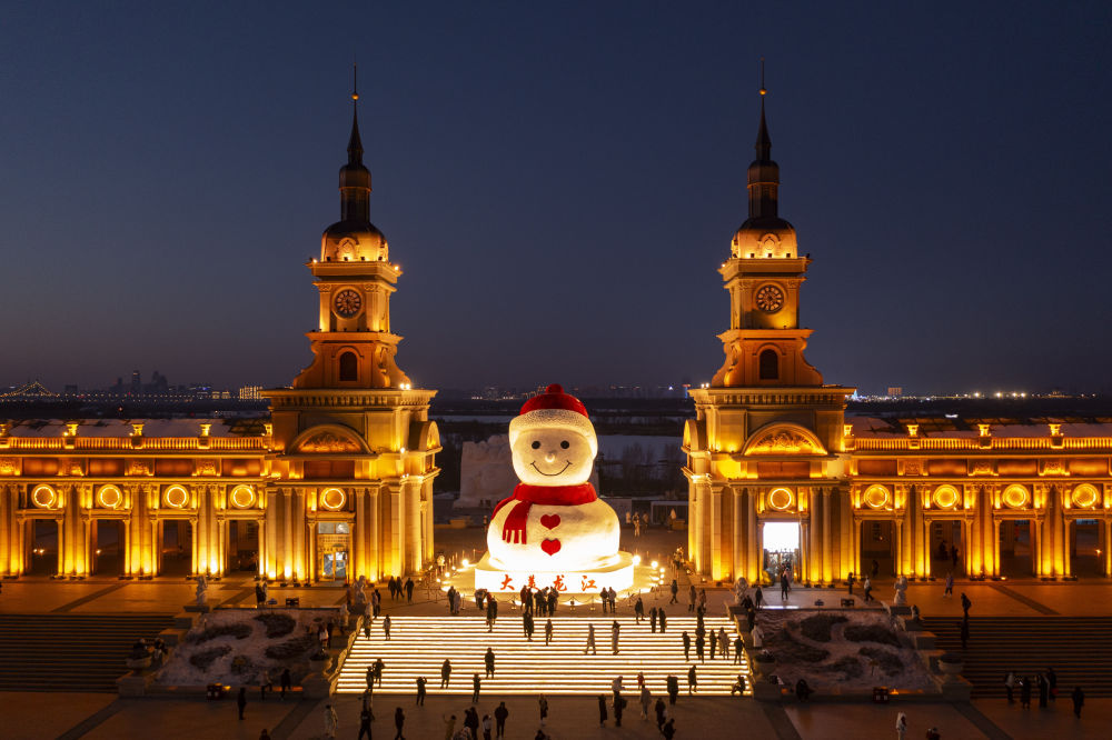 新年伊始,“冰城”哈爾濱正值冰雪旅游旺季,當?shù)卦谑袇^(qū)打造了多個雪人景觀供游客參觀游玩。這些造型各異的雪人仿佛是“冰城”的冬日使者,迎接來自世界各地的游客,展現(xiàn)冰雪文化的魅力。
