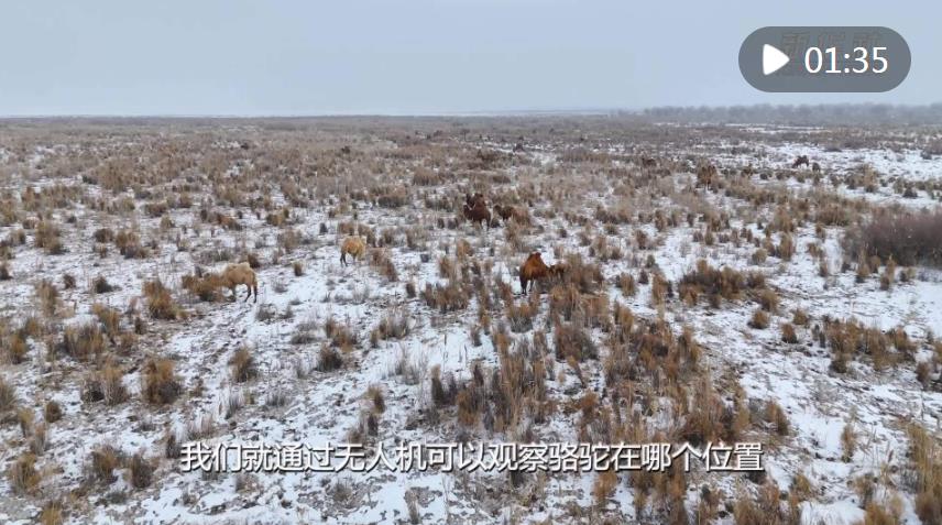 在新疆巴音郭楞蒙古自治州博湖縣,牧民道爾加拉每天都要把駱駝趕到戈壁灘上放牧,不過和以往不同的是,他現(xiàn)在放牧使用無(wú)人機(jī)。