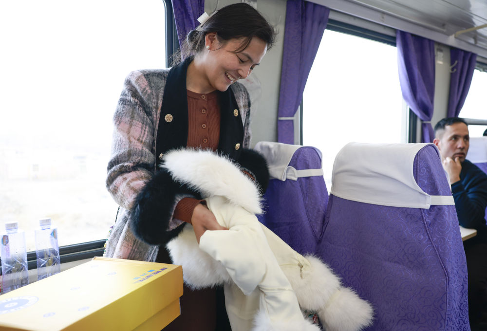 這次坐車,布麥熱姆發(fā)現(xiàn)了新變化:車廂的連接處貼上了對(duì)聯(lián),車窗上多了喜慶的窗花?!盎丶液髱臀覌尨驋咝l(wèi)生,再給她包個(gè)紅包。”布麥熱姆說(shuō),年味十足的車廂倒是提醒他,回家要抓緊備年貨了。
