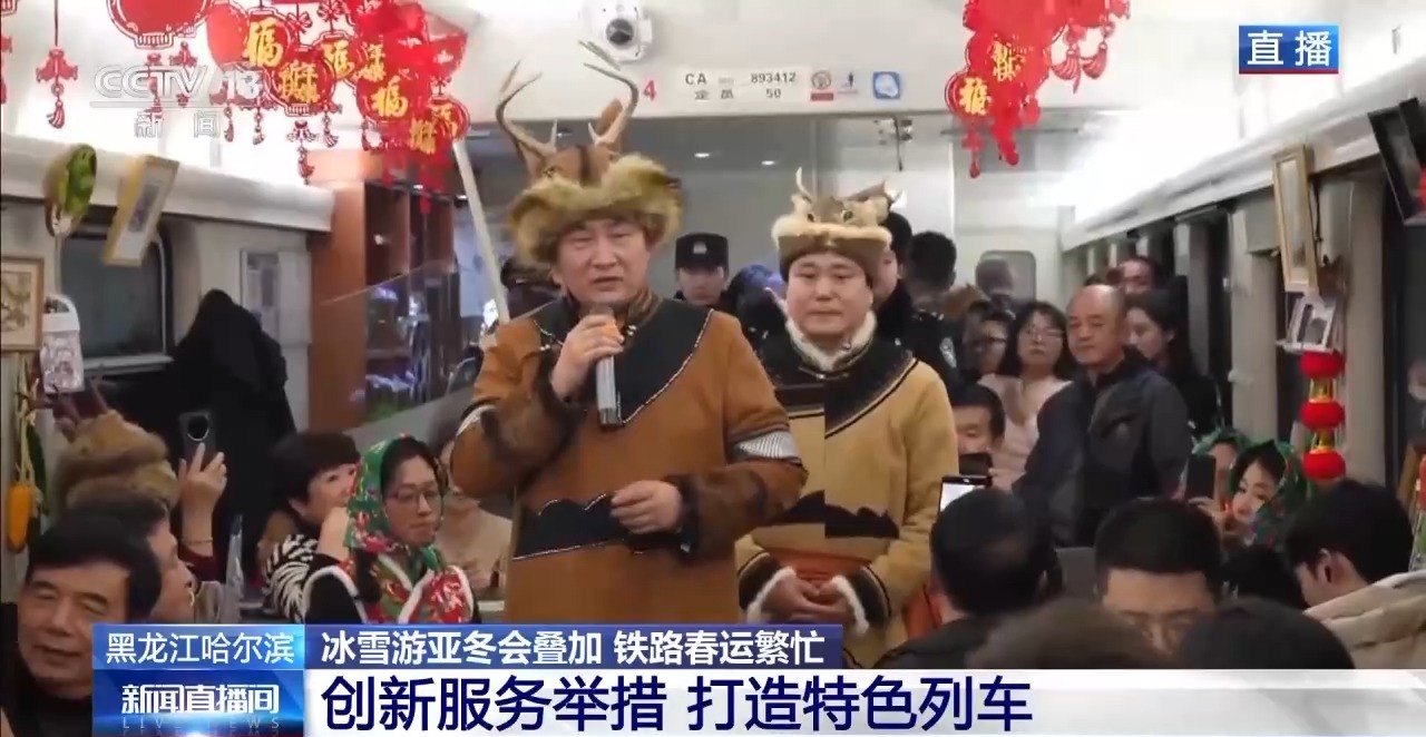 春運(yùn)期間還會(huì)繼續(xù)開(kāi)行非遺列車(chē),比如在哈爾濱開(kāi)往漠河的列車(chē)上,就會(huì)邀請(qǐng)鄂倫春族非遺傳承人為游客展示刺繡、面塑、樺皮畫(huà)等非遺內(nèi)容。讓游客在暢游冰雪的同時(shí),感受“非遺春節(jié)”。