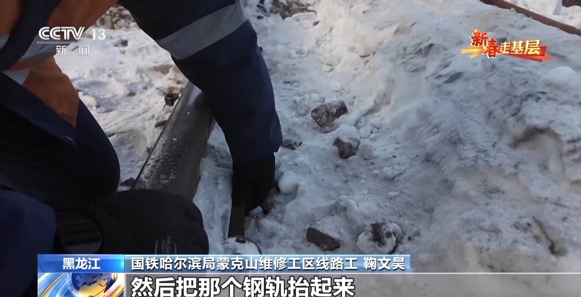 國鐵哈爾濱局蒙克山維修工區(qū)班長 翟明朗:冬天因為氣溫比較低,鋼軌涼,然后手熱,它碰著鐵直接就粘住了。不能直接往下拽,容易給皮拽下來。