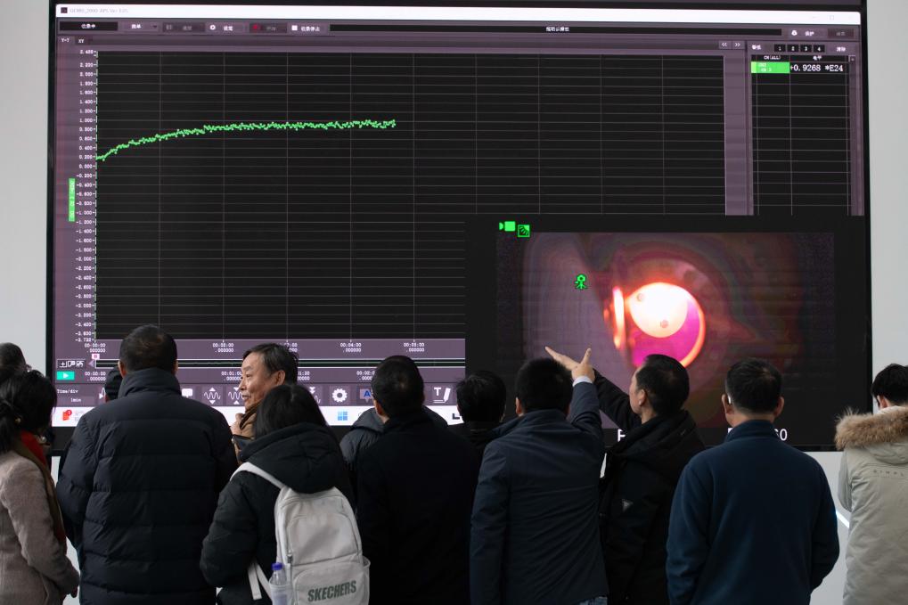 2025年1月14日,科研人員在巡看強(qiáng)流直線等離子體裝置“赤霄”的運(yùn)行狀態(tài)。新華社記者 張端 攝