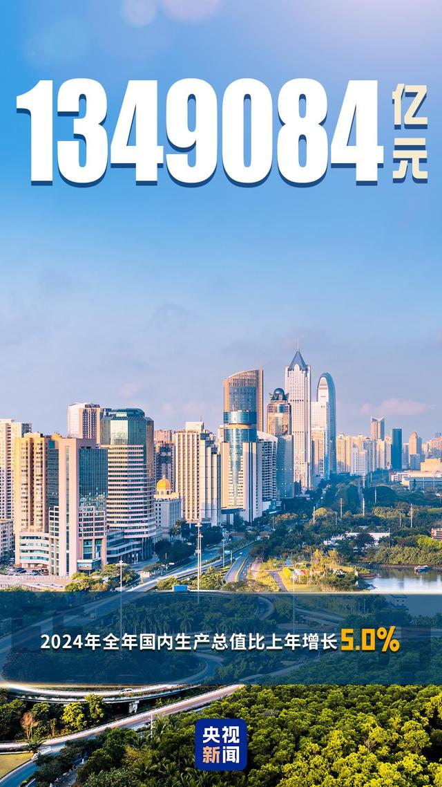 134.9萬(wàn)億元,這是國(guó)家統(tǒng)計(jì)局最新公布的2024年中國(guó)經(jīng)濟(jì)總量,與2023年相比,增長(zhǎng)了5%。