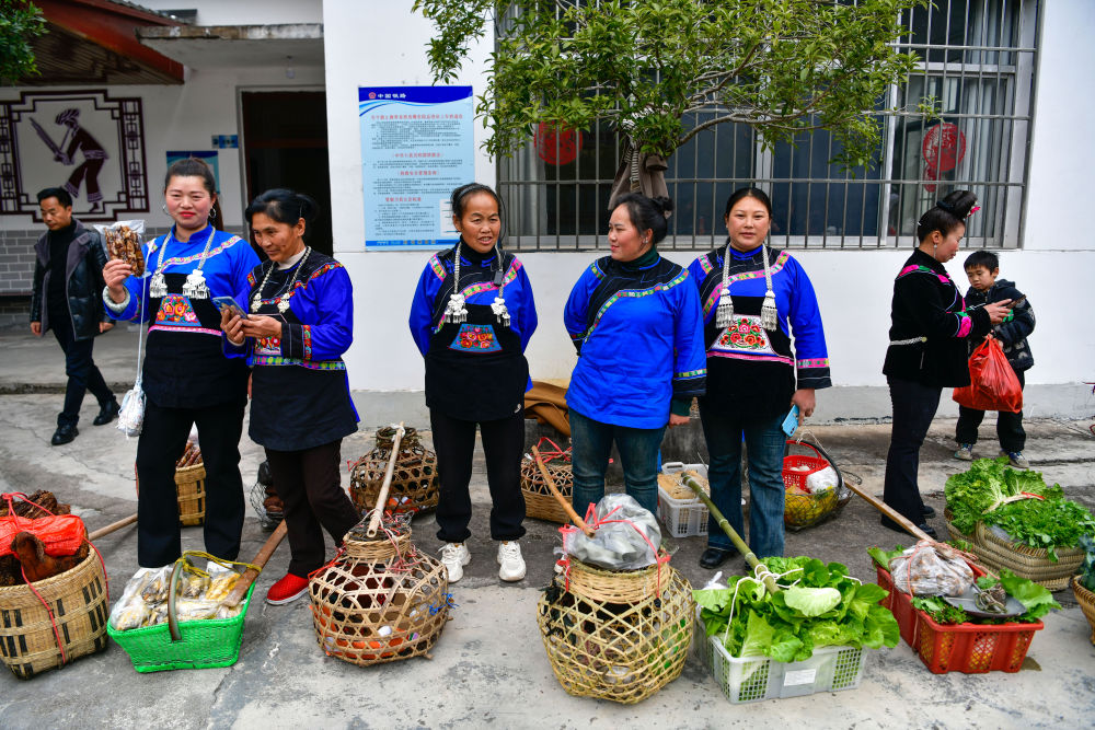 1月18日,在滬昆鐵路六個雞火車站,鐵路工作人員與村民交流當(dāng)天售賣的農(nóng)產(chǎn)品情況。新華社記者 楊文斌 攝