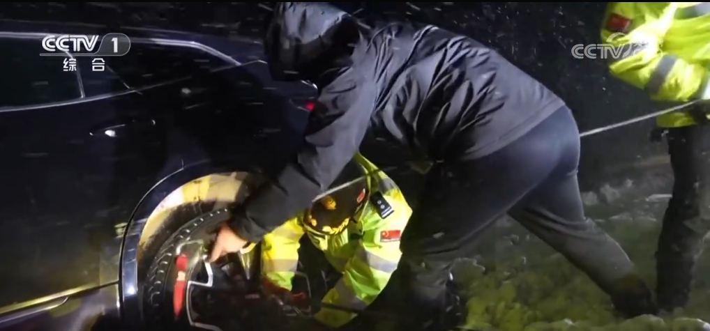 山西:交警替車主駕車 駛離結(jié)冰路面