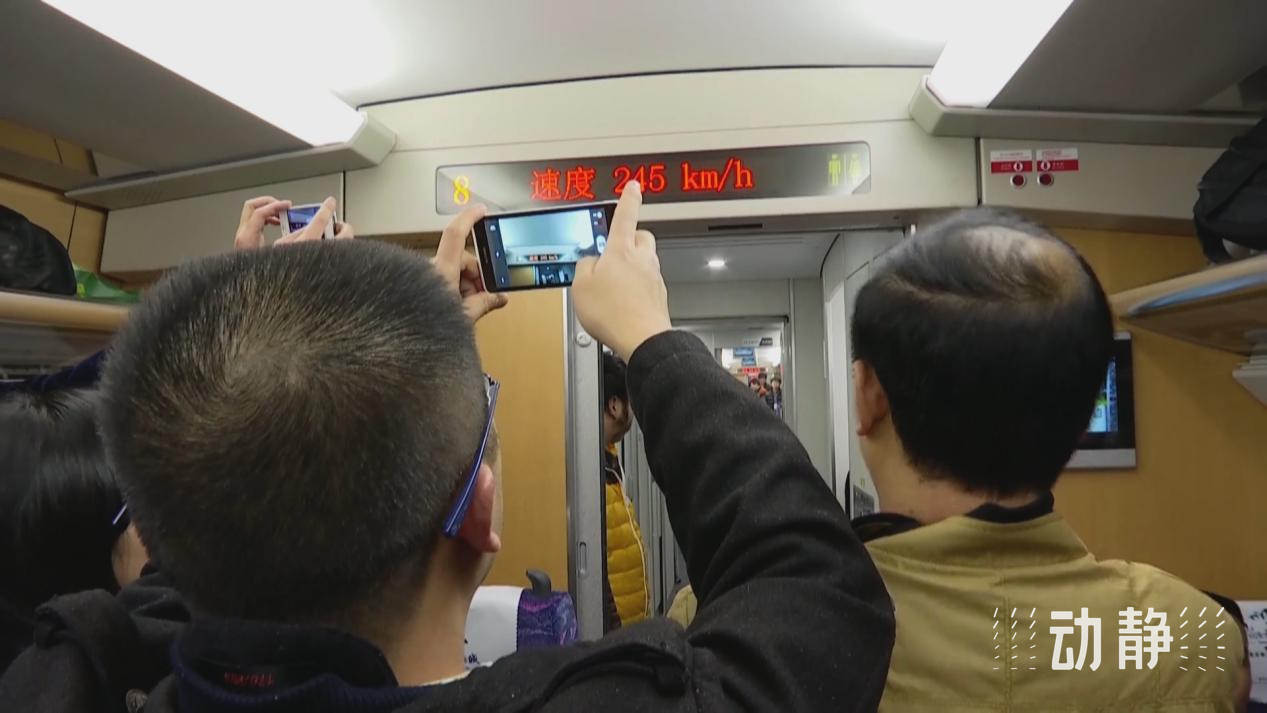 這趟列車的設(shè)計(jì)時(shí)速為250公里,開(kāi)車不到10分鐘,時(shí)速就達(dá)到了245公里,乘客們紛紛用手機(jī)和相機(jī)記錄著顯示器上不斷攀升的車速。