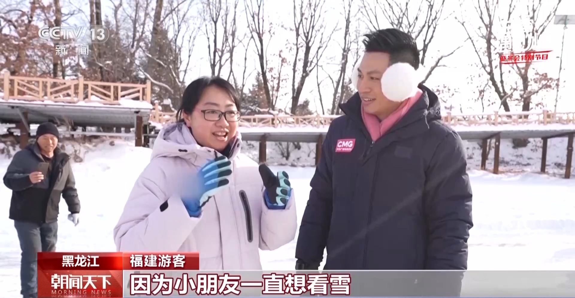 福建游客:因?yàn)樾∨笥岩恢毕肟囱?,想看真正的雪,他去年就想來結(jié)果沒成行,今年就一定要來了,真的很好玩。