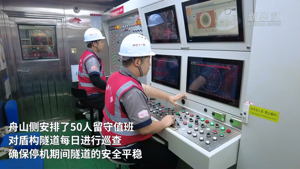 為確保工程穩(wěn)步推進(jìn),春節(jié)期間,金塘海底隧道寧波側(cè)仍有150名工人堅(jiān)守崗位,施工現(xiàn)場(chǎng)24小時(shí)不停工作業(yè);舟山側(cè)安排了50人留守值班,對(duì)盾構(gòu)隧道每日進(jìn)行巡查,確保停機(jī)期間隧道的安全平穩(wěn)。