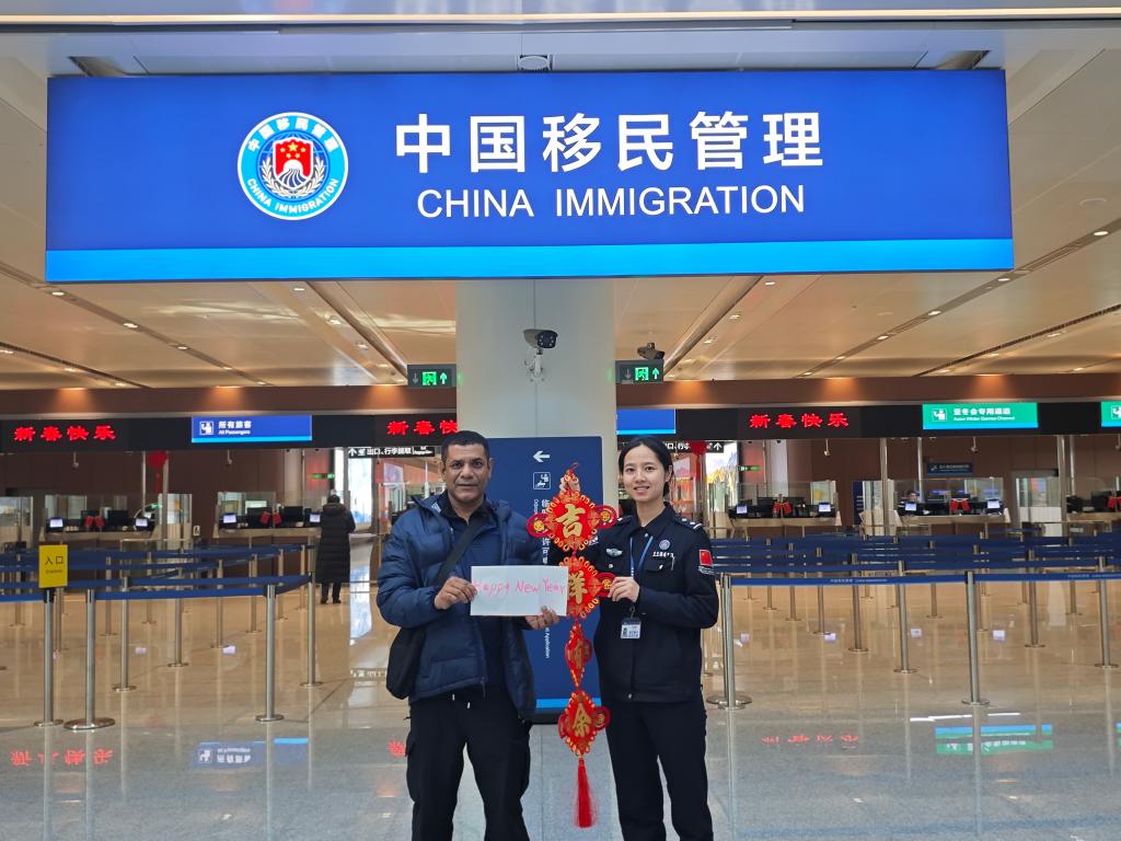 “歡迎回家!”“過年好!”“春節(jié)快樂!”移民管理警察的一聲聲問候,是旅客入境后感受到的第一縷中國(guó)溫暖。