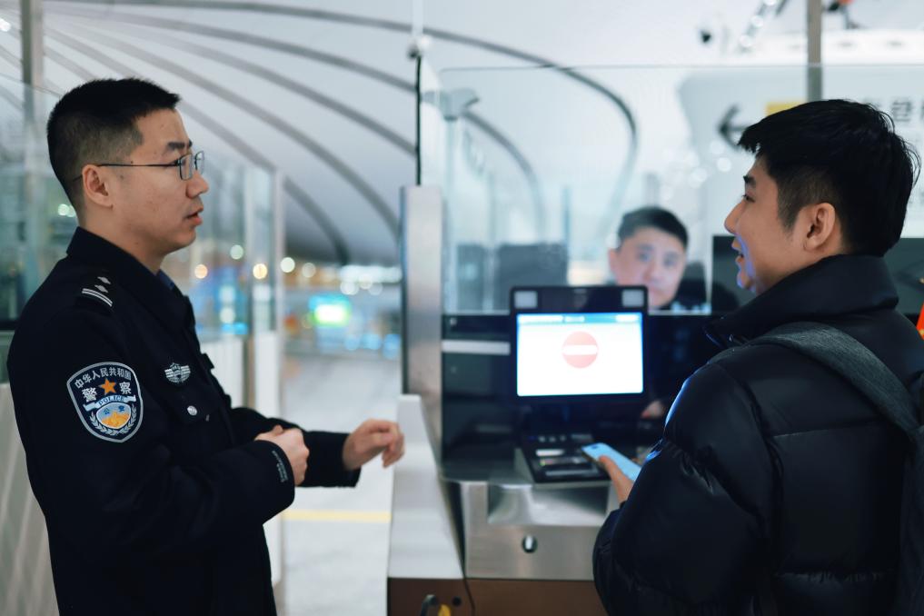 有周到的歡迎,也有詳實(shí)的問詢。得知年輕人姜?jiǎng)偬煲獑为?dú)前往某國(guó)旅游,執(zhí)勤民警詳細(xì)了解他的出游計(jì)劃,核實(shí)了接待方情況才放行。