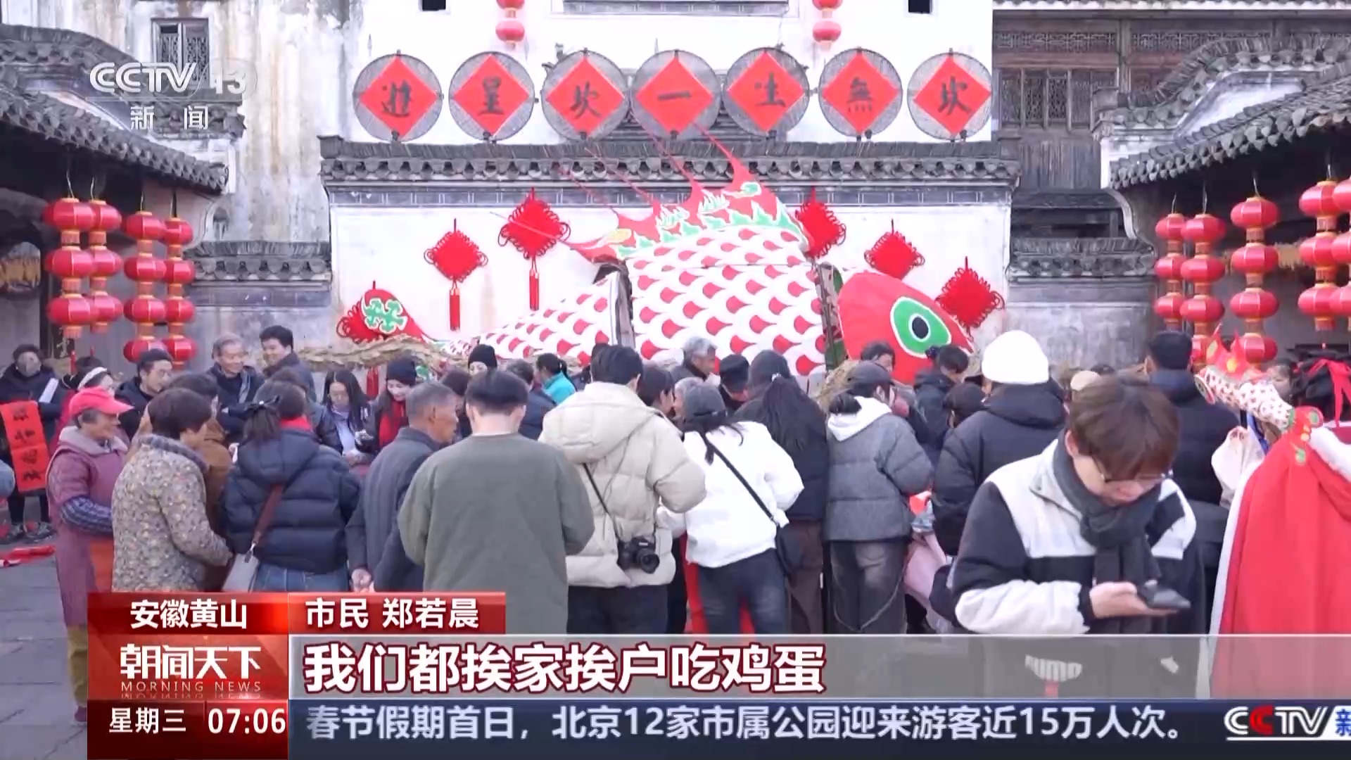 安徽黃山市民 鄭若晨:每年過年的時候,我們都挨家挨戶吃雞蛋。以前經(jīng)濟沒有這么發(fā)達的時候,雞蛋就是一個比較好的東西,拿出來招待客人。我們徽州人還是蠻延續(xù)傳統(tǒng)的春節(jié)習(xí)俗的。