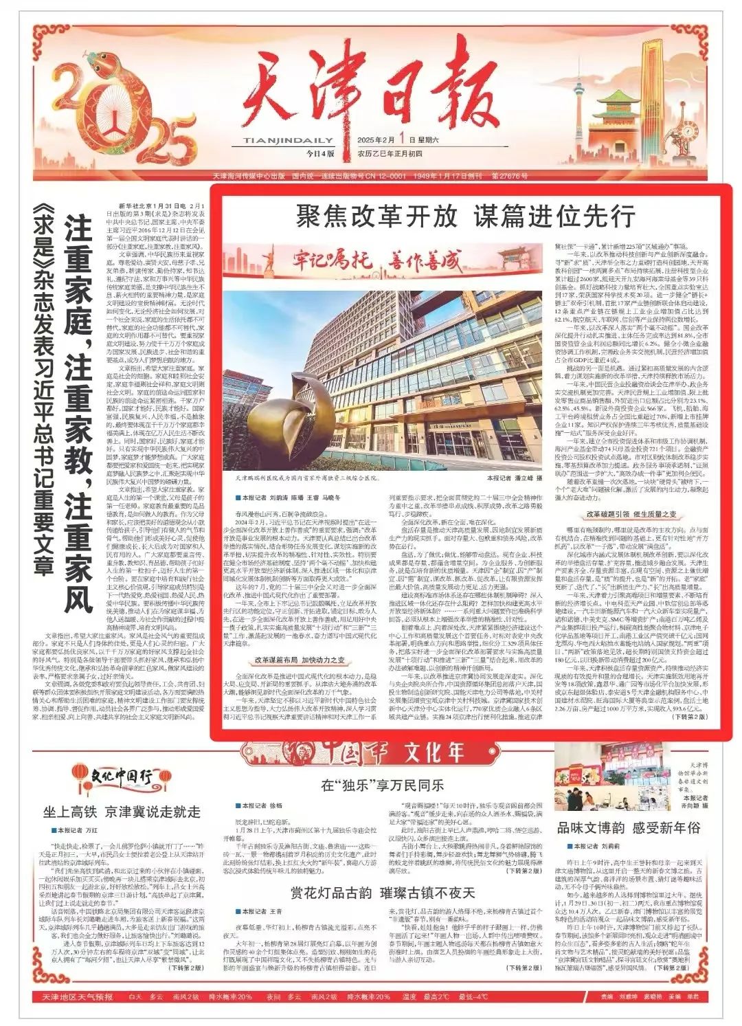 2024年2月,習(xí)近平總書記在天津視察時提出“在進(jìn)一步全面深化改革開放上善作善成”的重要要求,強(qiáng)調(diào):“改革開放是事業(yè)發(fā)展的根本動力。天津要認(rèn)真總結(jié)已出臺改革舉措的落實情況,結(jié)合形勢任務(wù)發(fā)展變化,謀劃實施新的改革舉措,切實提升改革的精準(zhǔn)性、針對性、實效性。特別要在健全市場經(jīng)濟(jì)基礎(chǔ)制度、堅持‘兩個毫不動搖’、加快構(gòu)建更高水平開放型經(jīng)濟(jì)新體制、深入推進(jìn)區(qū)域一體化和京津同城化發(fā)展體制機(jī)制創(chuàng)新等方面取得更大成效?!?/p>