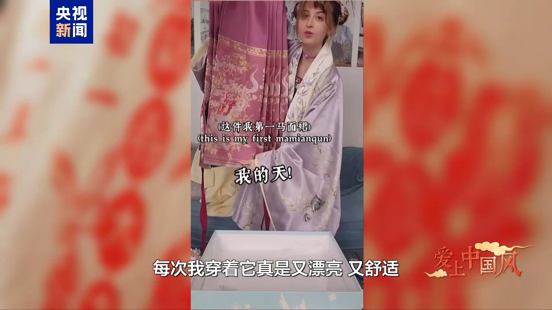 瑞秋:我在瀏覽網(wǎng)站的時候,我非常喜歡瀏覽時尚視頻,當(dāng)時看到了一個關(guān)于中國漢服的視頻,我當(dāng)時想這是什么?他們說,這是漢服的復(fù)興,年輕人正在把它帶回來。我覺得這太酷了。