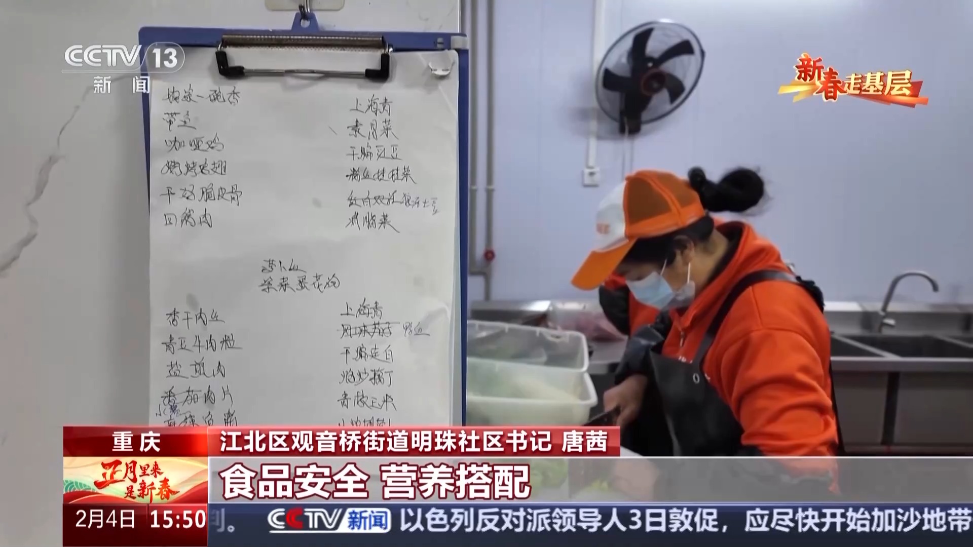 江北區(qū)觀音橋街道明珠社區(qū)書(shū)記 唐茜:要解決一個(gè)能夠辦食堂的一個(gè)地方,這是一個(gè)硬件上的問(wèn)題。第二個(gè)就是誰(shuí)來(lái)辦,首先我們提出的第一個(gè)就是要能夠滿足咱們這邊老人對(duì)高品質(zhì)生活的要求。食品安全、營(yíng)養(yǎng)搭配、健康我們要排在第一。既然要做我們就要做得好,要做到老人的心坎上去。