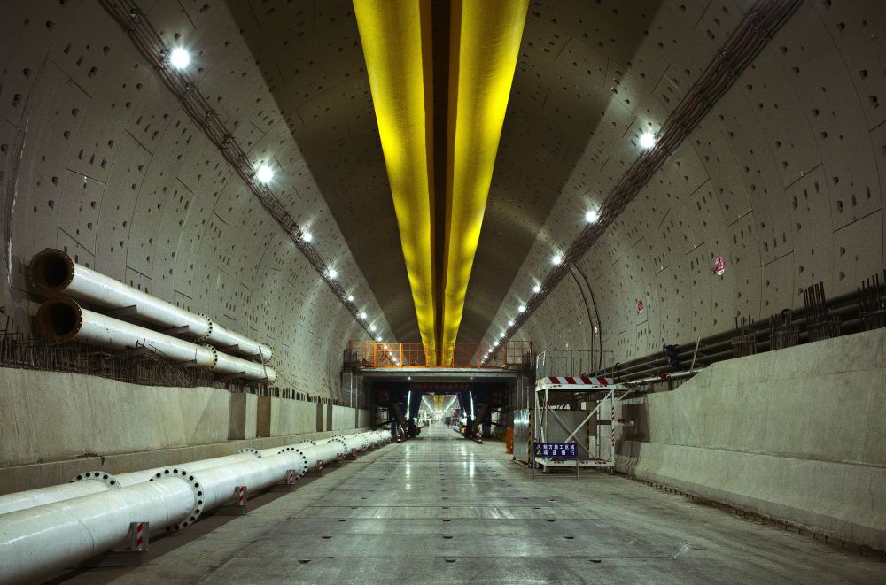 走進(jìn)這個(gè)黃河之下的“地底世界”,冷白色燈光如星輝般灑在隧道管片上,濃濃“水泥風(fēng)”撲面而來。