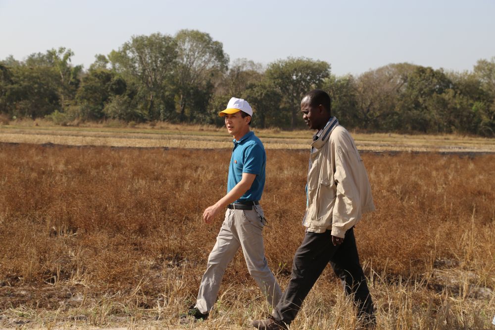 正月初一一早,吃完熱騰騰的湯面,專家們便驅(qū)車前往加布區(qū)的卡蘭塔巴農(nóng)場,查看水稻播種前的土地平整進(jìn)度。通往農(nóng)場的唯一通道是一條坑洼不平的土路,雨季泥濘,旱季塵土飛揚(yáng),他們對此早已習(xí)以為常。