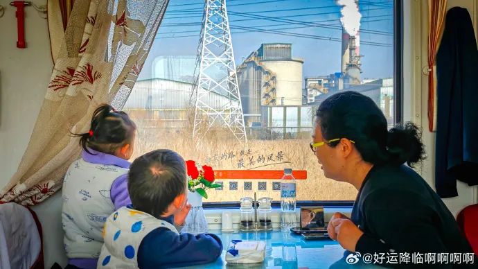 烏魯木齊至沈陽(yáng)的T304次列車,途經(jīng)巴彥淖爾站時(shí),小女孩看著窗外,爺爺疼愛地看著孫女。