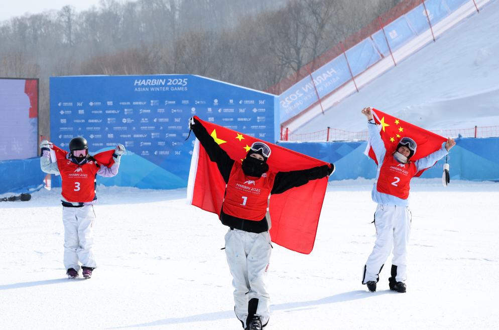當(dāng)日中國代表團(tuán)的4金全部來自雪上項目。越野滑雪和滑雪登山雙雙收官,中國隊繼續(xù)出色發(fā)揮。斬獲越野滑雪男子4X7.5公里接力和女子4X5公里接力項目兩金后,中國隊拿下越野滑雪6枚金牌中的5枚,創(chuàng)造亞冬會該項目最好成績?;┑巧巾椖恐袊牳仟毑絹喼?,包攬混合接力前三名,這個新增項目的三個小項共9枚獎牌全部被中國隊收入囊中。
