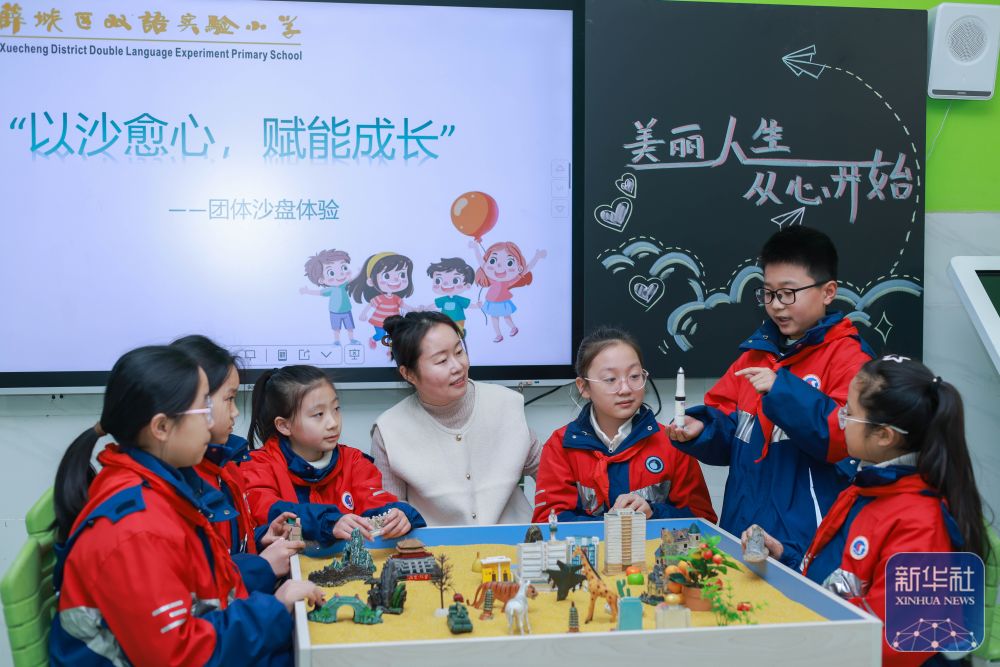 2月14日,山東省棗莊市薛城區(qū)雙語實(shí)驗(yàn)小學(xué)老師為學(xué)生進(jìn)行心理健康教育。新華社發(fā)(王龍飛攝)