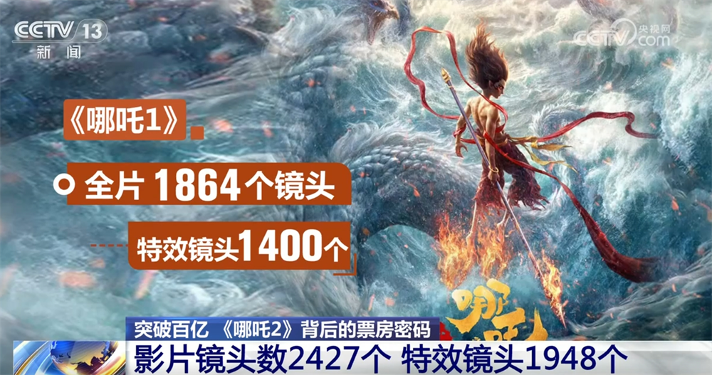 據(jù)電影主創(chuàng)團(tuán)隊(duì)提供的數(shù)據(jù):《哪吒1》,也就是《哪吒之魔童降世》全片1864個(gè)鏡頭,特效鏡頭1400個(gè);而《哪吒2》,鏡頭數(shù)達(dá)到2427個(gè),其中特效鏡頭1948個(gè)。影片中的每一個(gè)特效鏡頭、每一幀畫面都是138家動(dòng)畫公司、4000多名動(dòng)畫人的合力托舉。