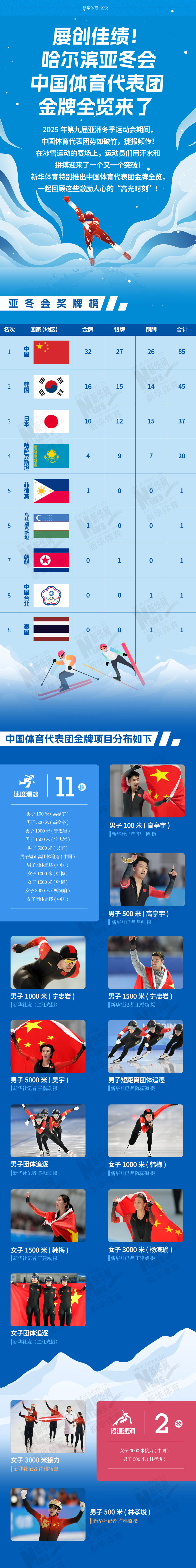 長圖|屢創(chuàng)佳績!哈爾濱亞冬會(huì)中國體育代表團(tuán)金牌全覽來了!