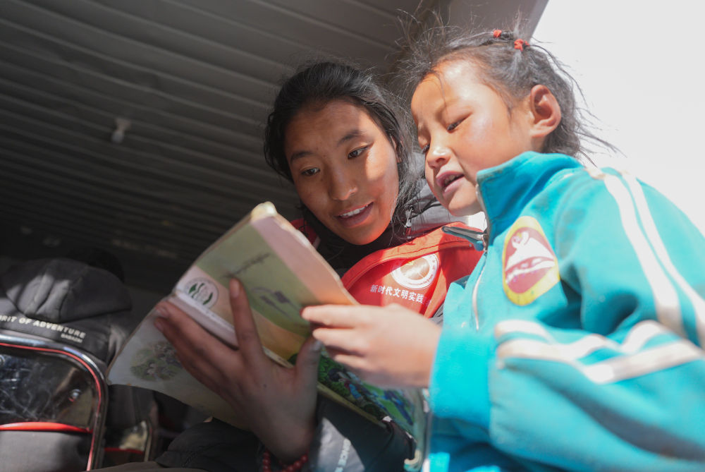 1月25日,在定日縣曲洛鄉(xiāng)熱木青村安置點,大學(xué)生志愿者在安置點在給孩子們輔導(dǎo)功課。新華社記者 晉美多吉 攝