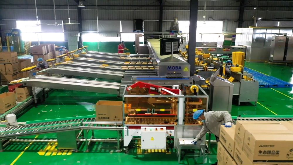 在湖北建始的一處養(yǎng)殖基地內(nèi),一枚枚當(dāng)天產(chǎn)的新鮮雞蛋通過(guò)流水線不斷傳輸。經(jīng)過(guò)分揀、殺菌、打包、裝箱的雞蛋將被發(fā)往江蘇、浙江等地。