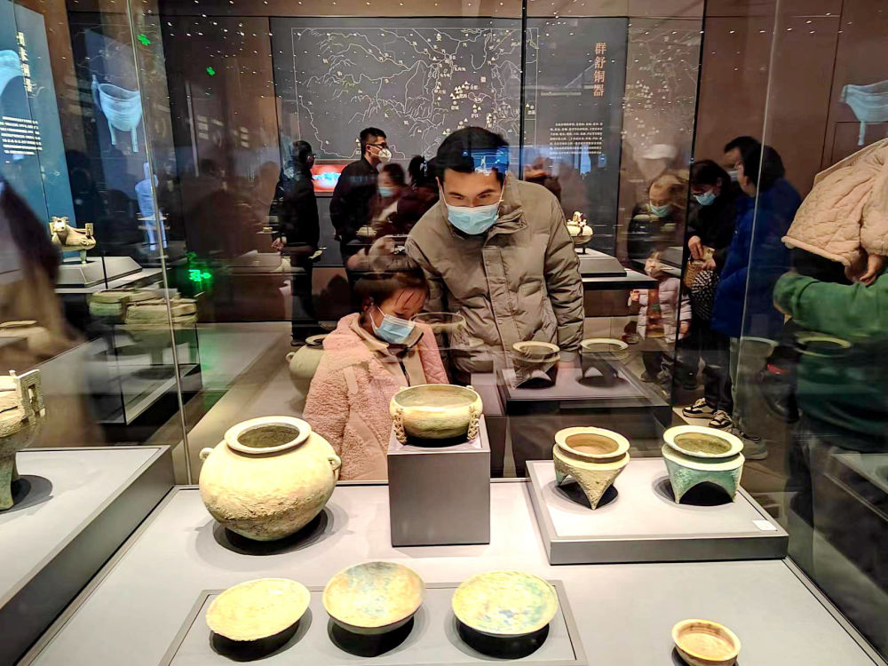 踏上館內(nèi)玻璃棧道,仿若一步千年。腳下戰(zhàn)國(guó)瓦礫層清晰可見(jiàn),青銅車馬器構(gòu)件低語(yǔ)著戰(zhàn)國(guó)烽煙,“越王者旨于賜劍”見(jiàn)證亂世爭(zhēng)伐,楚金幣布成的“金山”如同暗夜繁星,鄂君啟金節(jié)上篆刻著中國(guó)最早的關(guān)稅密碼……“我們不做‘百科全書(shū)’,只講好本土故事?!卑不粘幕┪镳^副館長(zhǎng)常遠(yuǎn)霞告訴記者,去年旅游高峰期這里日均接待游客超2萬(wàn)人。